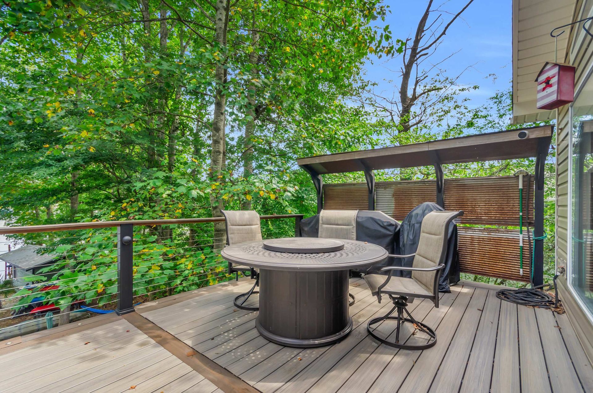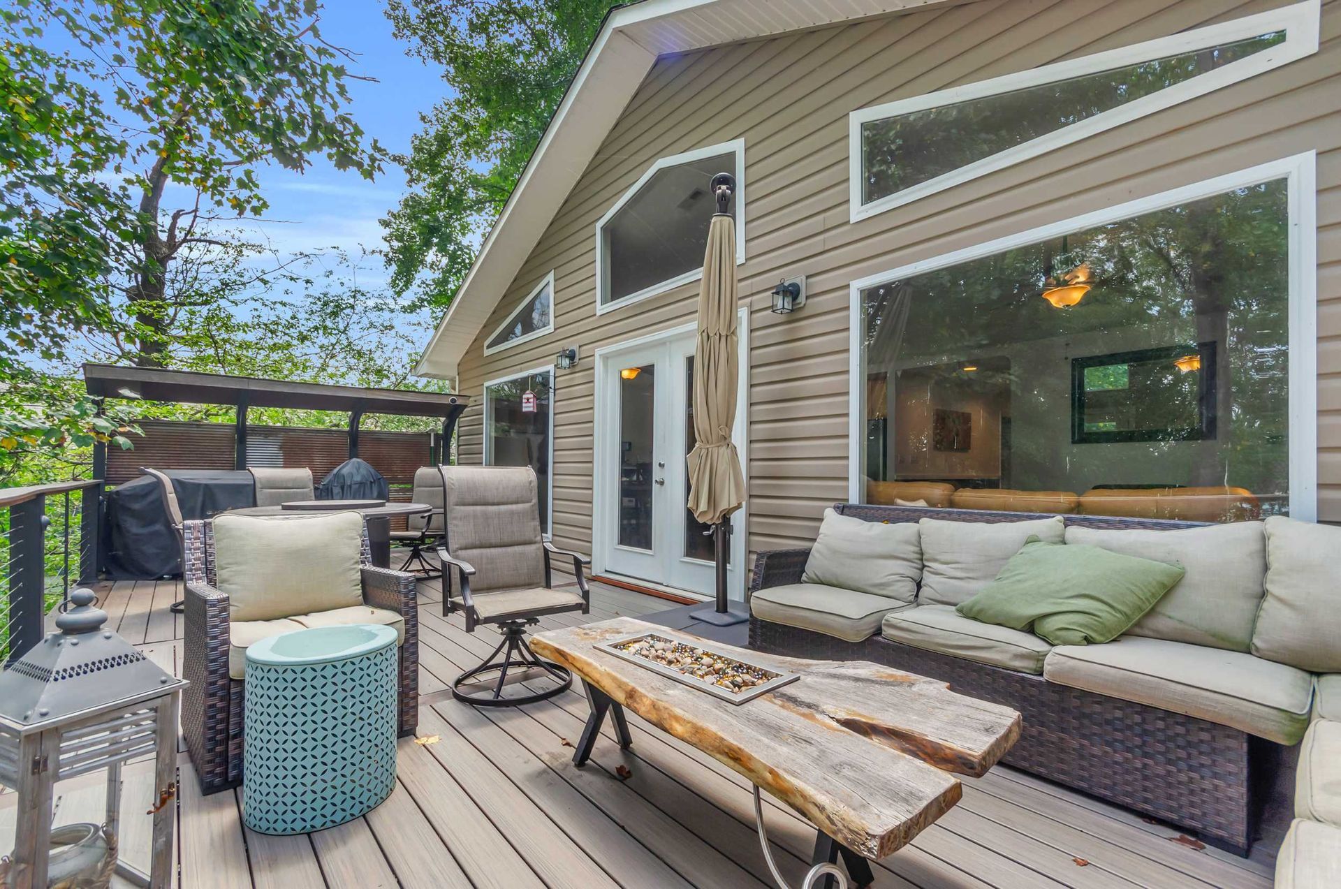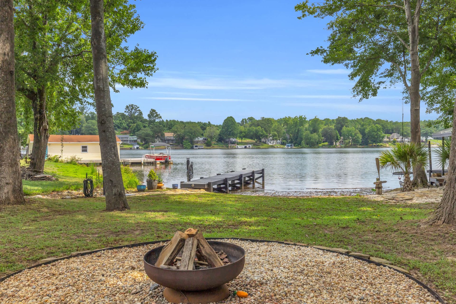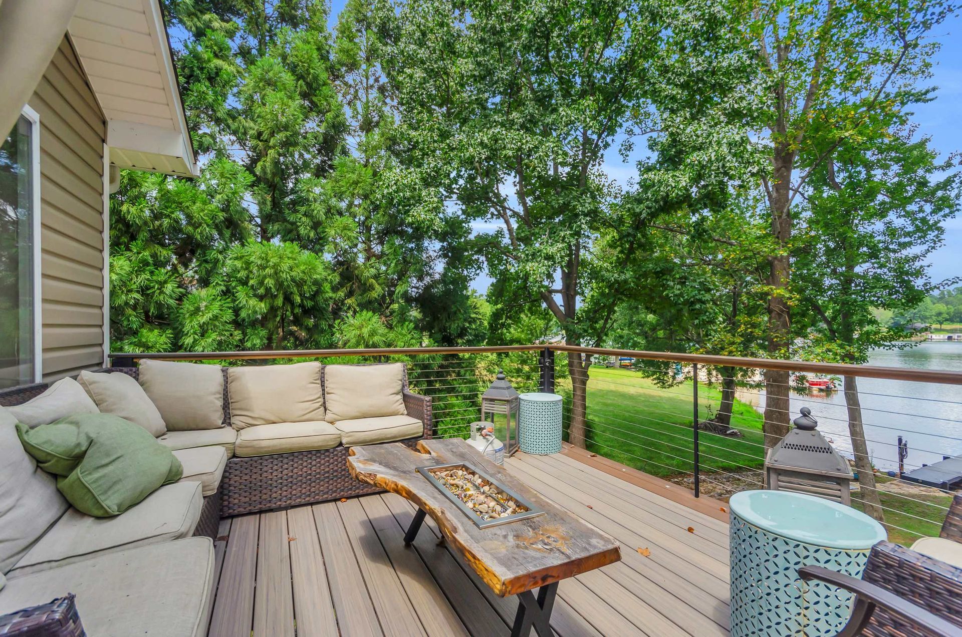 An upstairs retreat with sweeping lake views and a spacious deck for sunrise coffee or sunset cocktails.